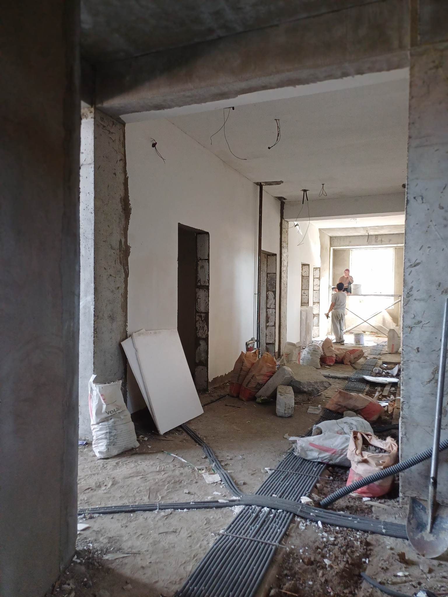 I, II дугаар давхарын цагаан замаска, гадна ханын хар замаскын ажлууд хийгдэж байна. Ажлын талбайд 18 хүн ажиллаж байна.