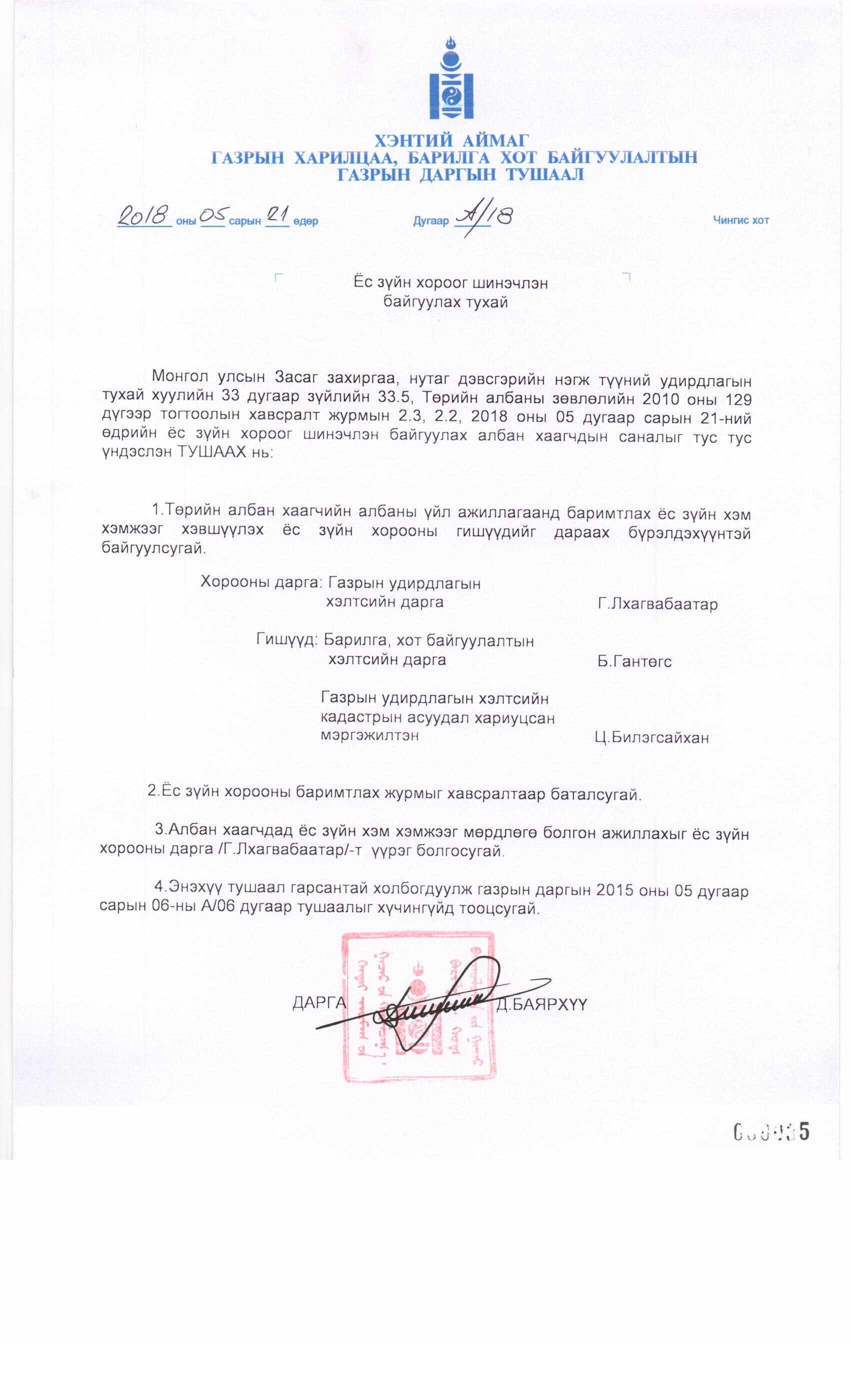 ЗАСГИЙН ГАЗРЫН ТОГТООЛ