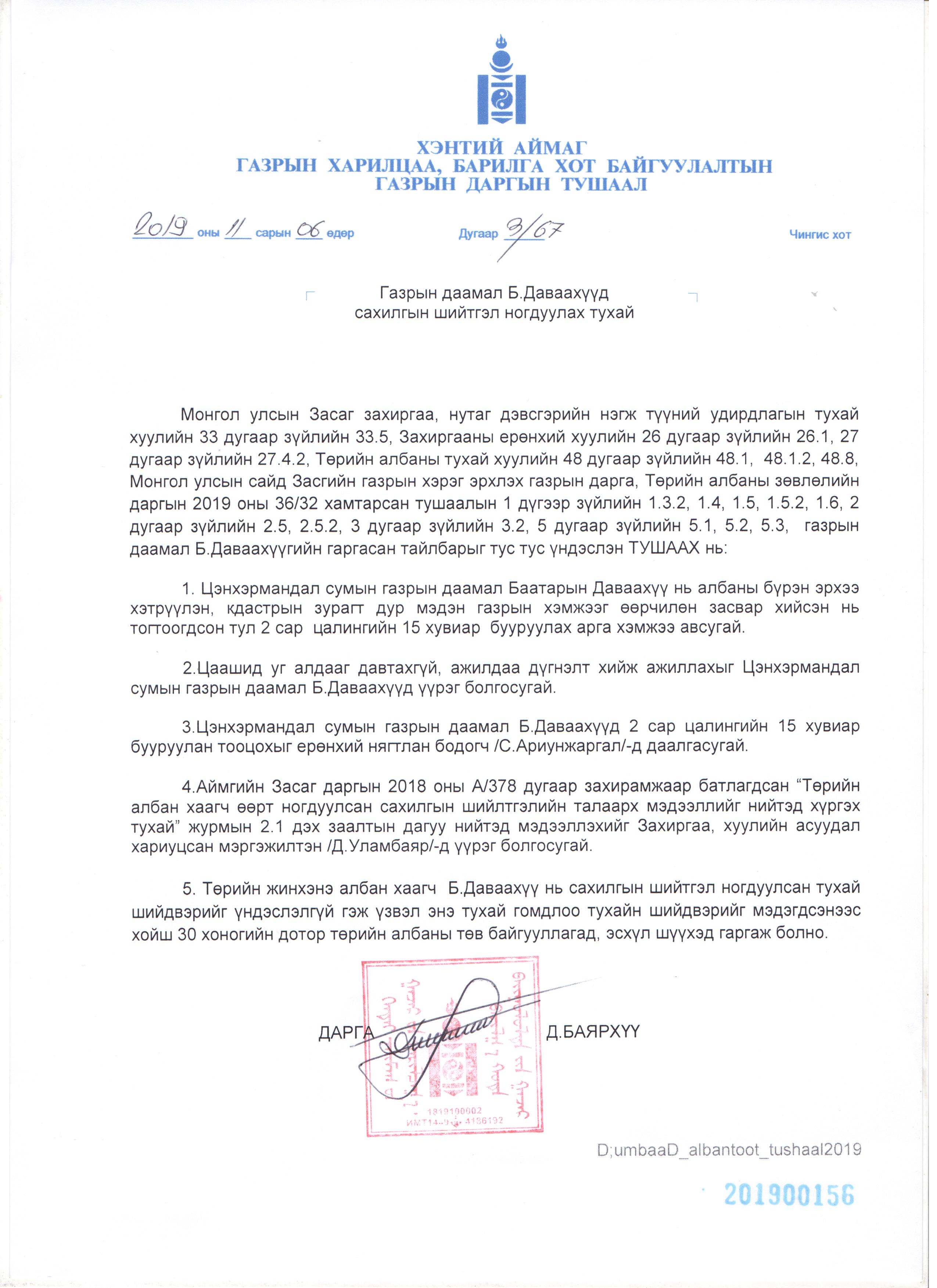 ГАЗРЫН ДАРГЫН ТУШААЛ