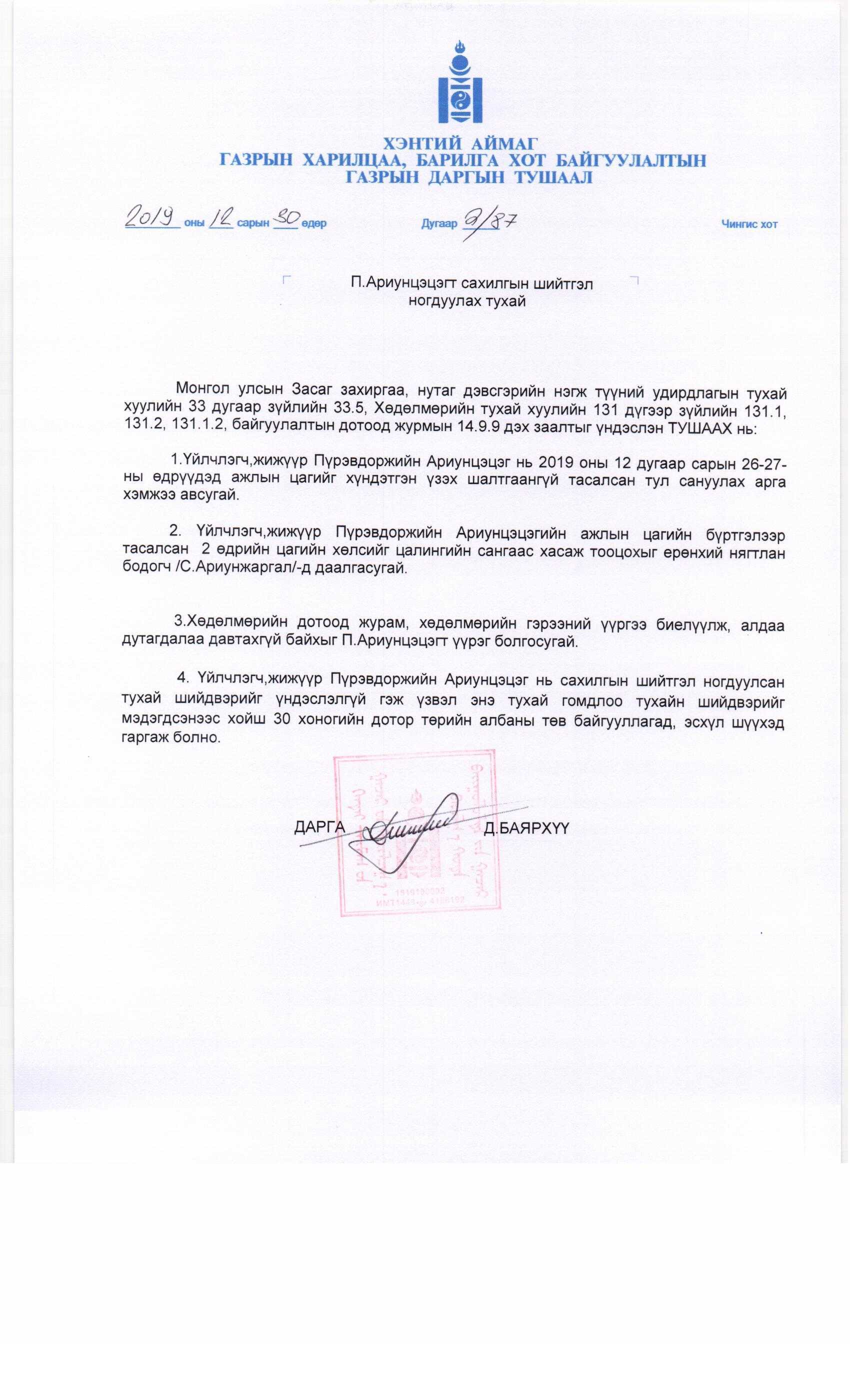 ГАЗРЫН ДАРГЫН ТУШААЛ
