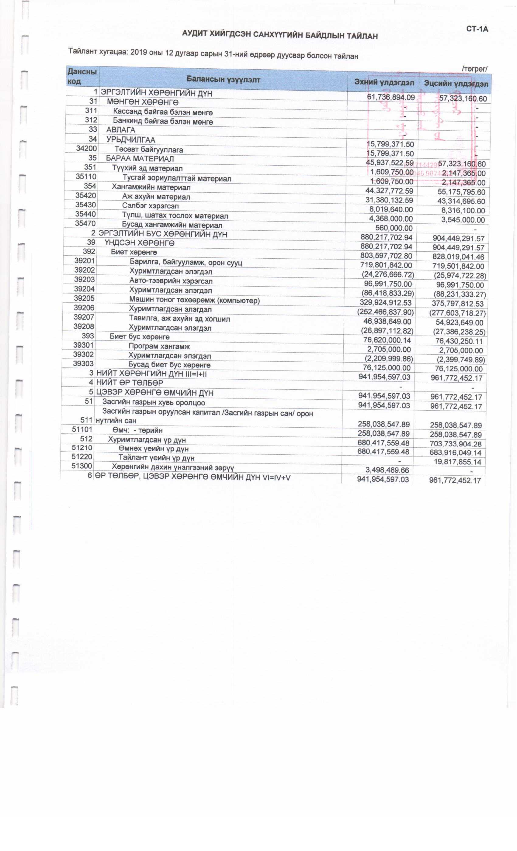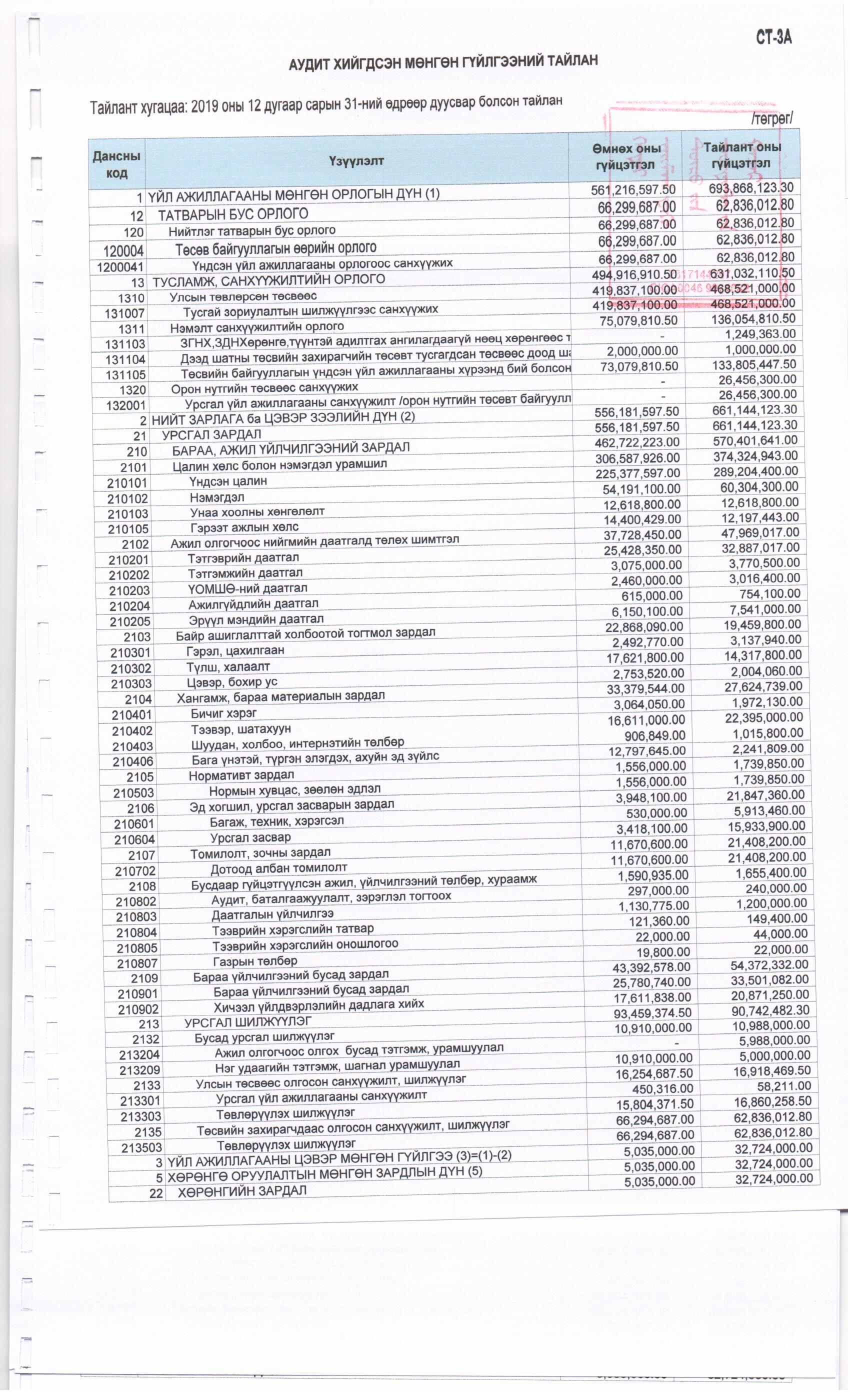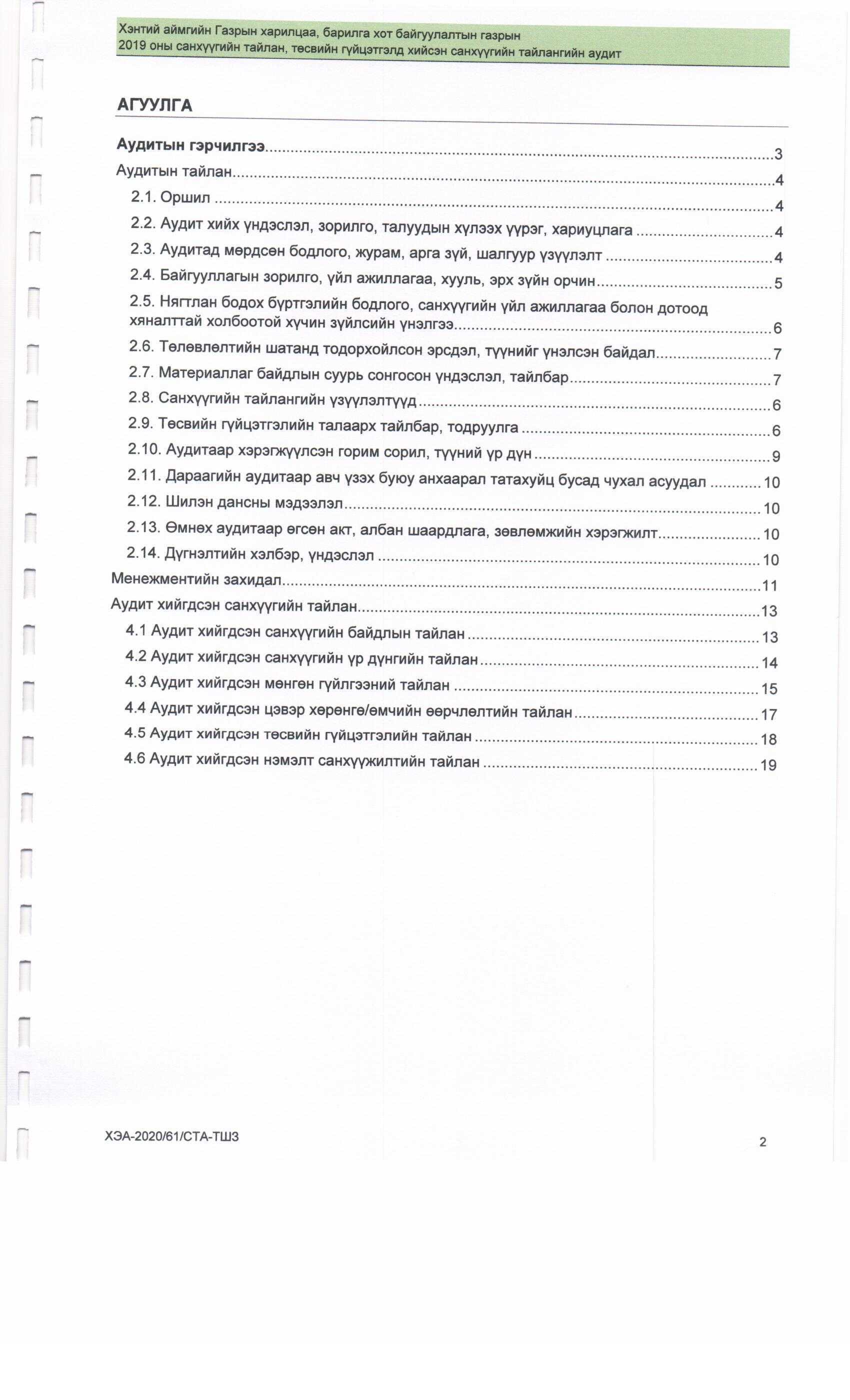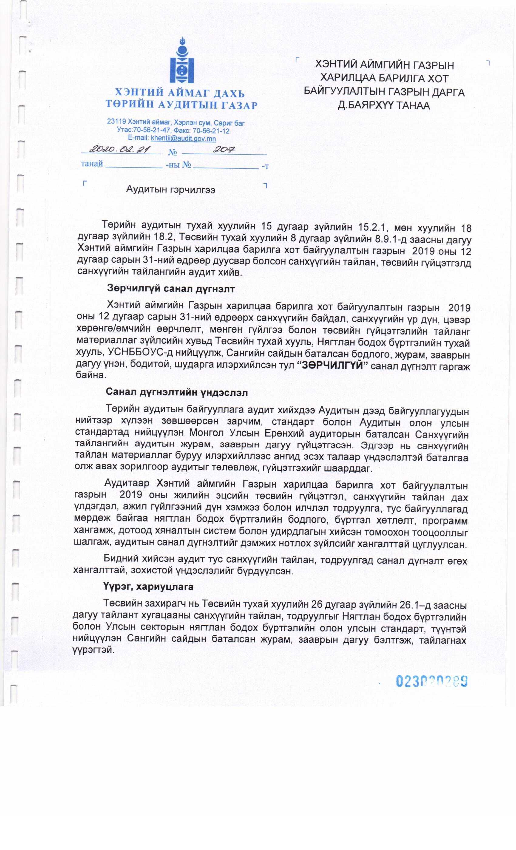 2019 оны Аудитын тайлан