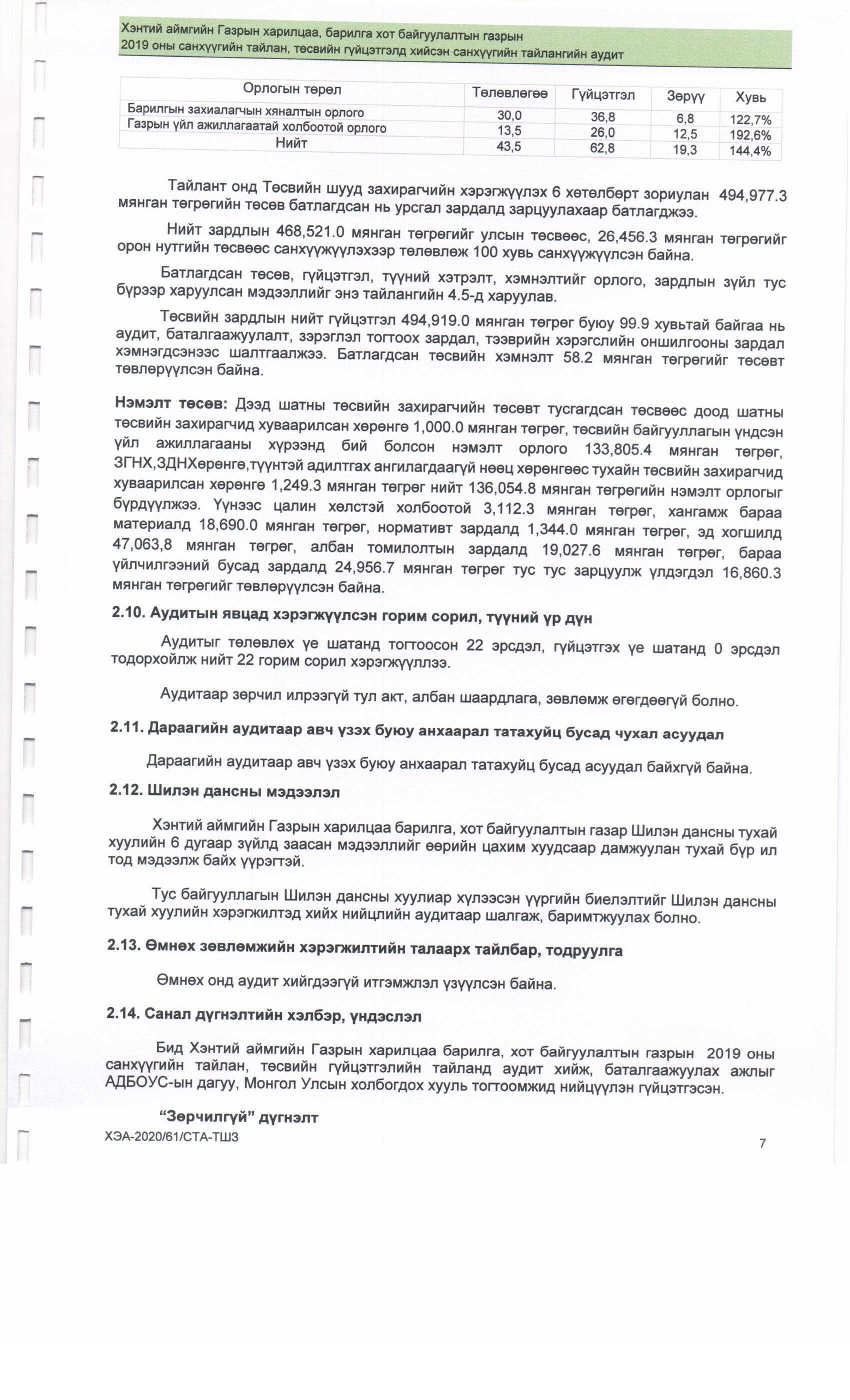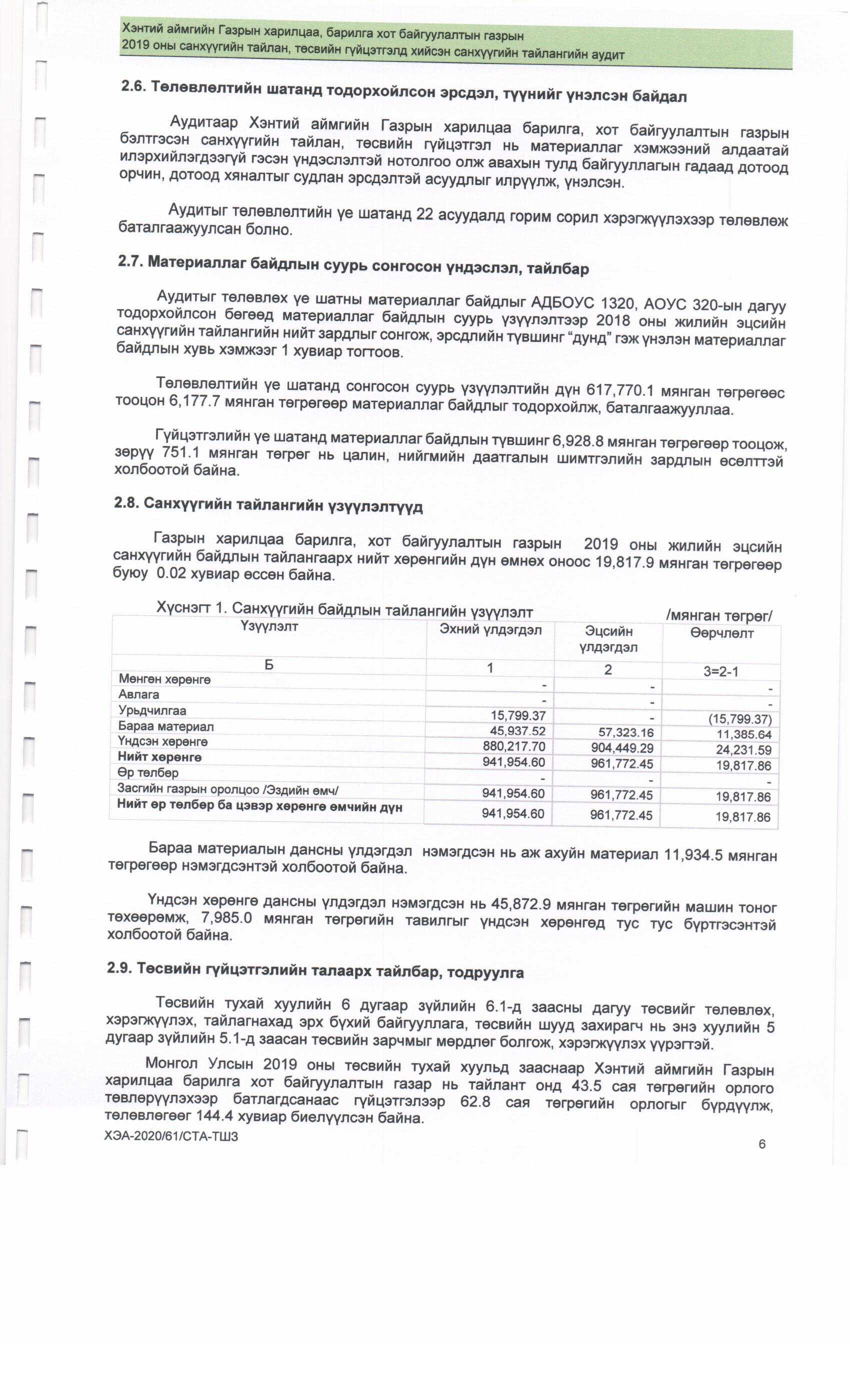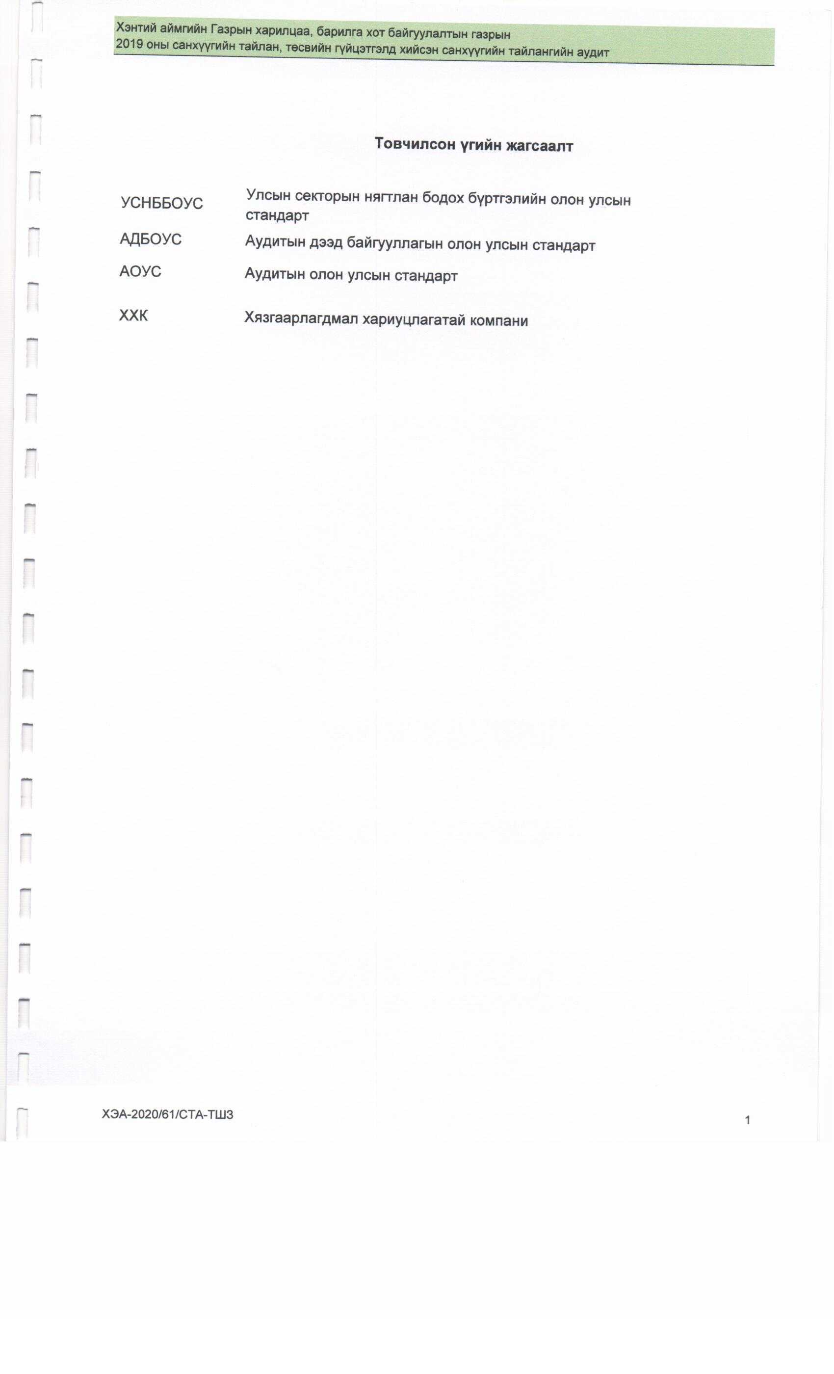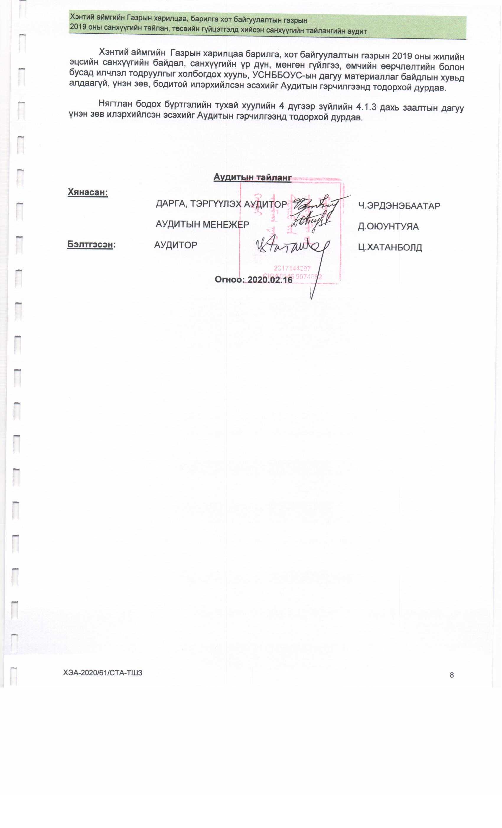 2019 оны Аудитын тайлан
