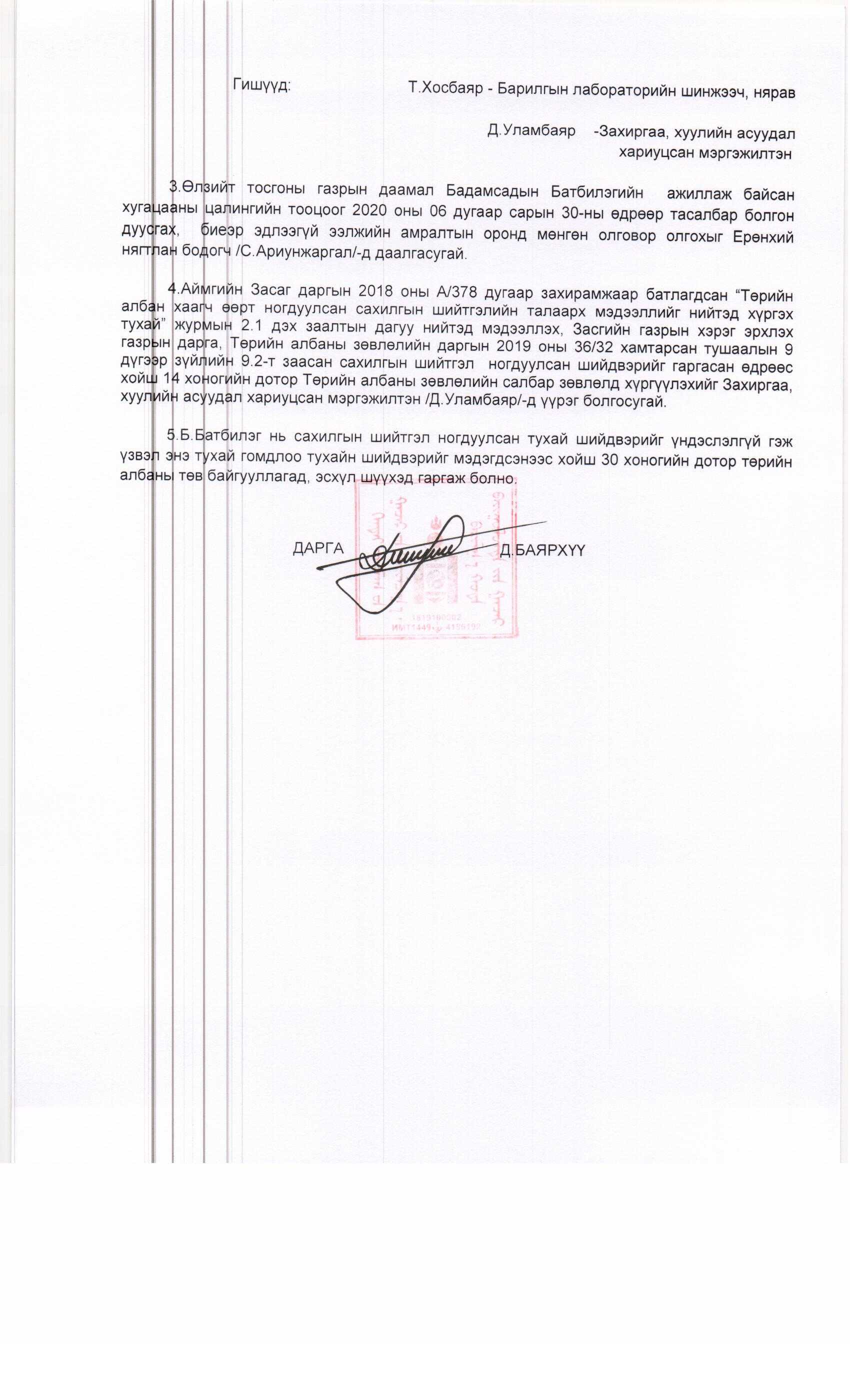 Сахилгын шийтгэл ногдуулах тухай тушаал б/29