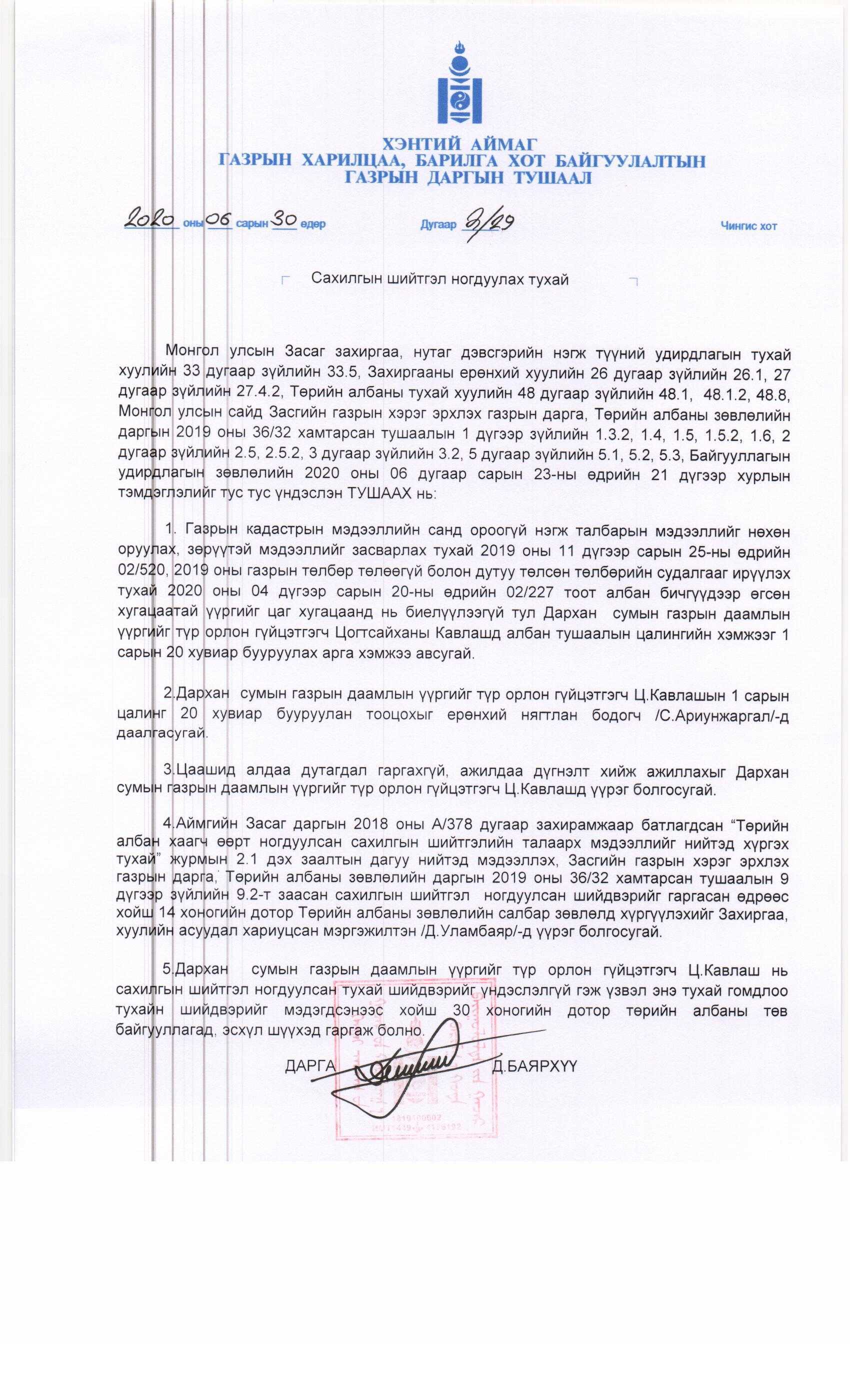 ГАЗРЫН ДАРГЫН ТУШААЛ