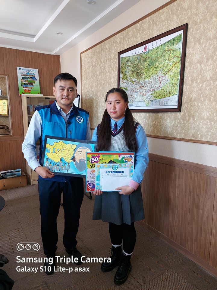 Монгол Улсад геодези зураг зүйн салбар үүсч хөгжсөний 90, эрхэлсэн төрийн захиргааны байгууллага байгуулагдсаны 50 жилийн ойд зориулан "Газрын зураг миний амьдралд", "Миний гэр газрын зураг дээр", "Миний сургууль газрын зураг дээр", "Миний цэцэрлэг газрын зураг дээр" сэдвээр цэцэрлэгийн нас, бага анги, дунд болон ахлах ангийн сурагчдын дунд зохион байгуулж 8 сумын 200 гаруй хүүхдийн бүтээл ирснээс урьдчилсан шалгаруулалтыг явуулж 3 насны ангилалд 1-3 дугаар байр, тусгай байр 5 буюу нийт 24 хүүхдийн бүтээлийг шалгаруулж шагнаж урамшууллаа. Насны ангилал тус бүрээр эхний 3 байранд орсон нийт 9 бүтээлийг Газар зохион байгуулалт, геодези зураг зүйн газарт хүргүүлж улсын хэмжээний нэгдсэн шалгаруулалт оруулж 11 сарын 1-ний өдөр дүн гарна. Хүүхдүүдээ амжилттай зохион байгуулж оролцуулсан бүх сургууль, цэцэрлэгийн удирдлагууд багш нар болон бүтээлээ ирүүлсэн бүх хүүхдүүдээ сурлага, уран бүтээлийн өндөр амжилтыг хүсэн ерөөе.