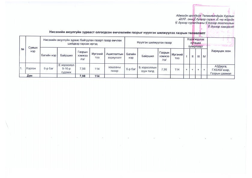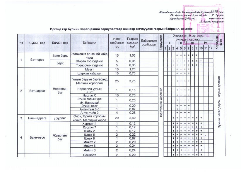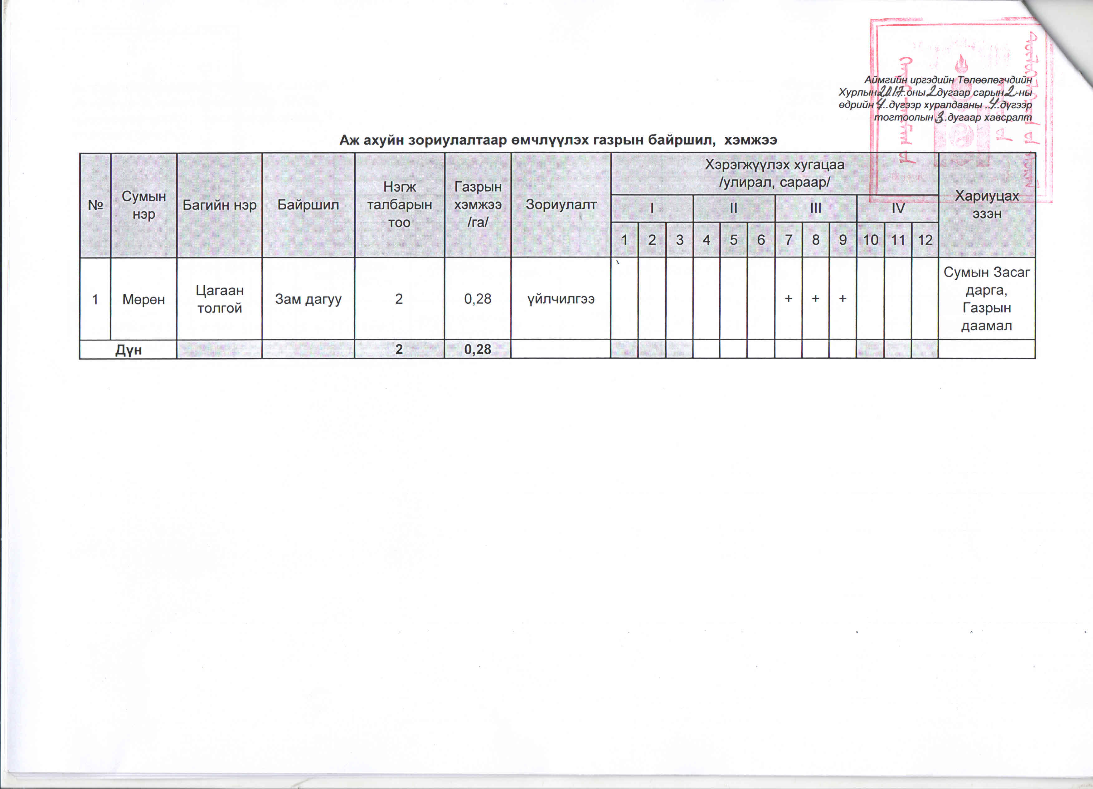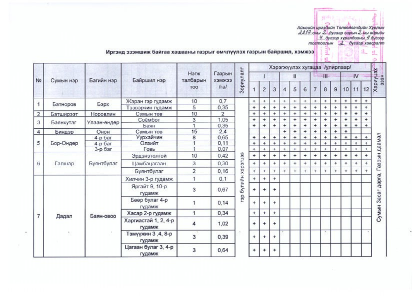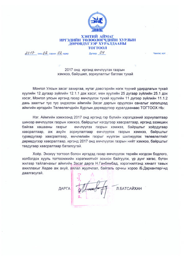 2017 ОНД ИРГЭНД ӨМЧЛҮҮЛЭХ ГАЗРЫН БАЙРШИЛ, ХЭМЖЭЭ, ЗОРИУЛАЛТ