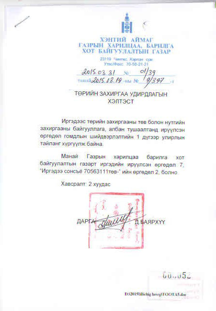 ГАЗРЫН ДАРГЫН ТУШААЛ