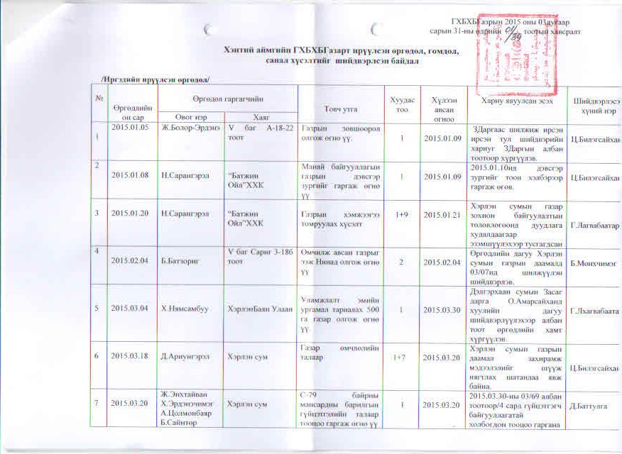 Өргөдөл гомдлын тайлан